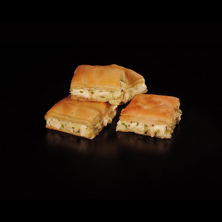Τυρί γκούντα, παρμεζάνα, γάλα, ελαιόλαδο, αλάτι, πιπέρι. Συνοδεύεται με ντοματίνια, iceberg και σως vinaigrette.