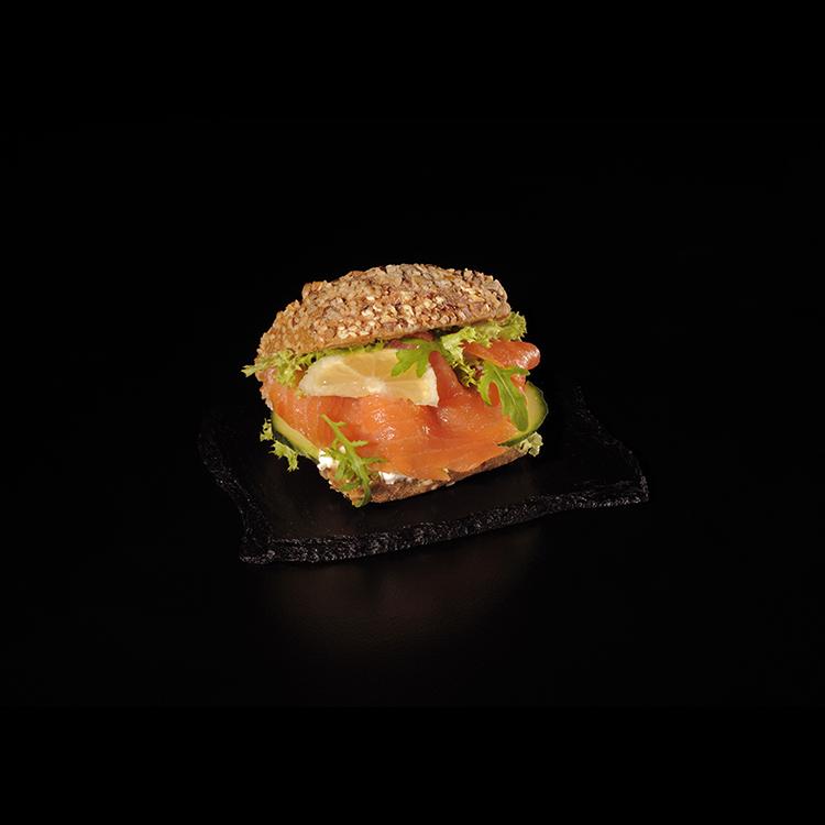 Σολομός καπνιστός, τυρί κρέμα, αγγούρι, σαλάτα ρόκα-μαρούλι, λεμόνι, ελαιόλαδο, πιπέρι