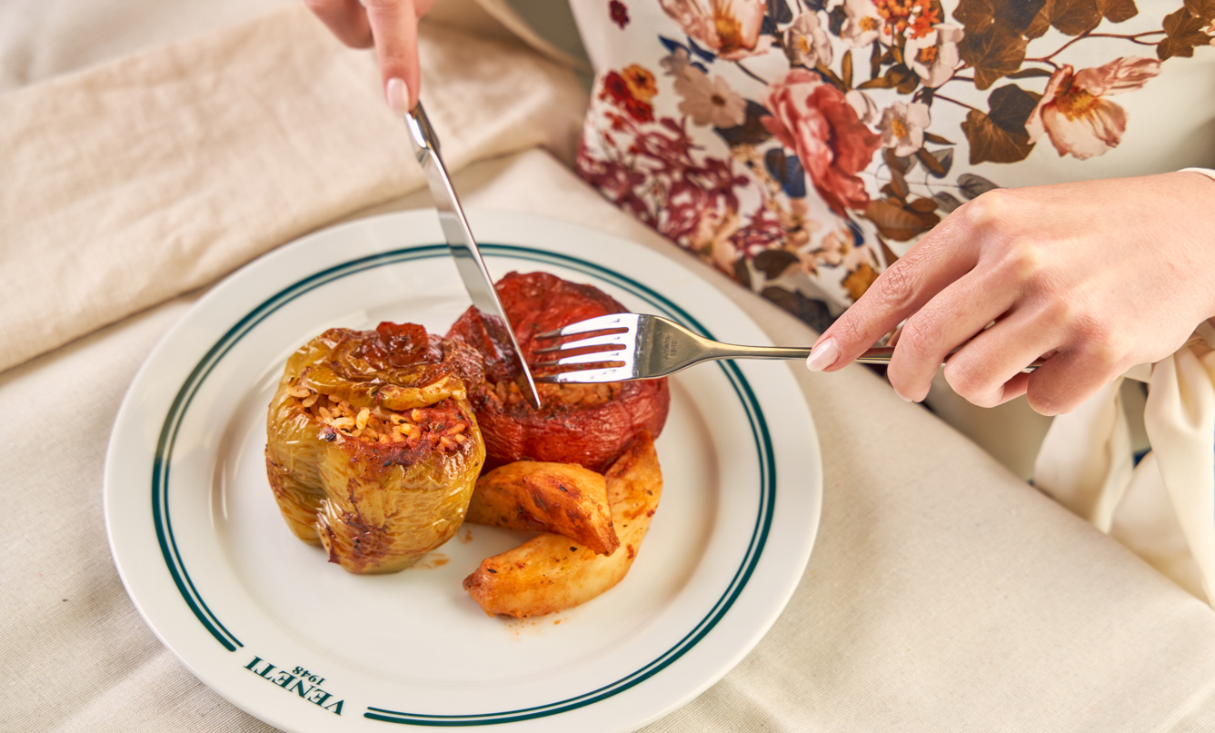 Φέτα, ντομάτα, πιπεριές, ελιές